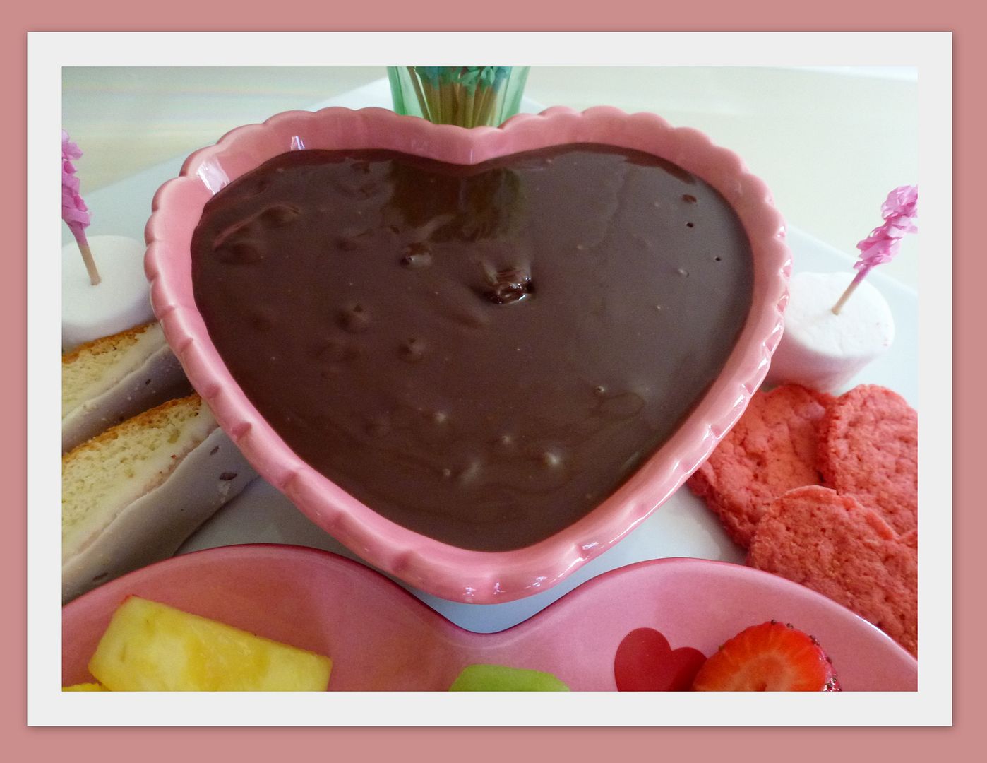 Some dipping suggestions: cookies, biscotti, cubes of cake, dried apricots, pineapple, fresh berries, sliced pears, orange slices, and marshmallows.